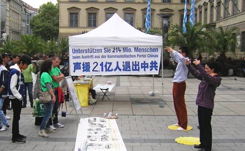 ![]() 图3:德国慕尼黑市中心,市民、游客签名声援法轮功反迫害 |