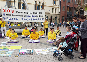 法轮功学员向当地人与中国留学生们介绍了以“真、善、忍”为修炼原则的法轮功,并讲述了十六年来中共残酷迫害法轮功的真相。
