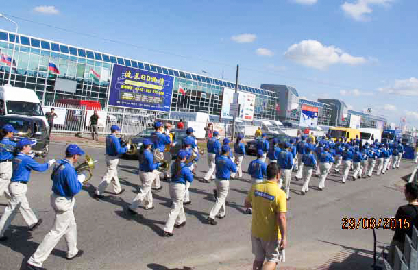 欧洲天国乐团在参加华沙多元文化节的前一天中午,特意来到华沙郊区的中国商业城,为那里的中国、越南、土耳其和印度同胞们传送法轮大法福音,演奏天国乐团的乐曲,展示军乐队的天威和庄严。