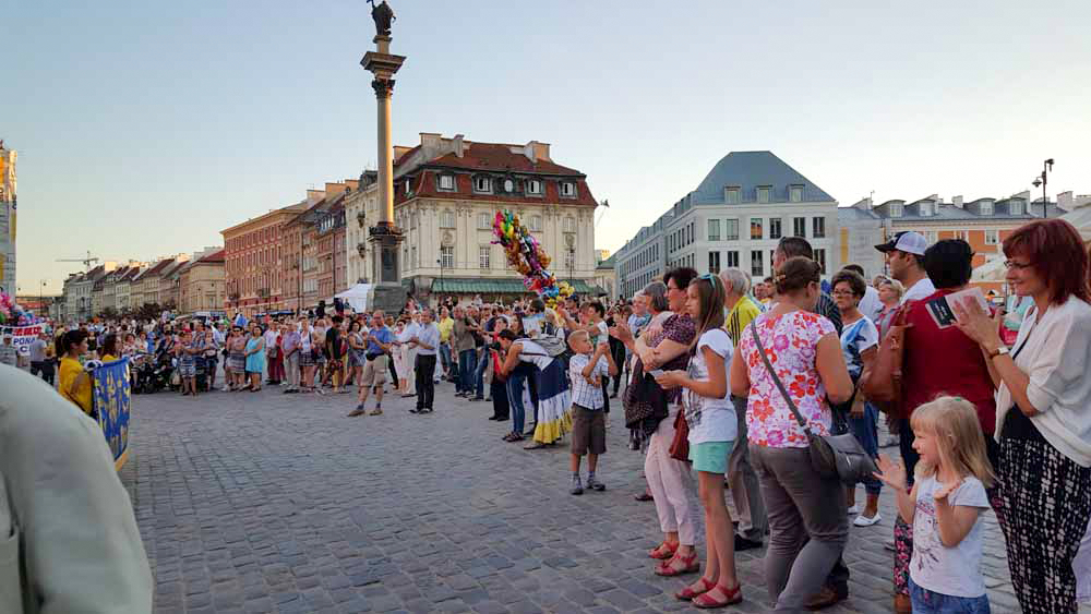天国乐团在结束中国商业城弘法后又来到华沙市中心的老城,为众多的游客们演奏法轮大法天音,受到热烈的欢迎。