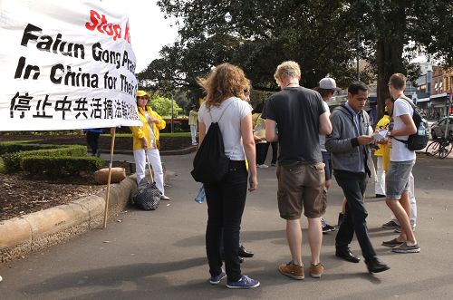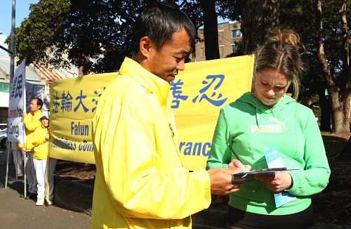 ![]() 法轮功学员在悉尼市区讲真相,征集签名,声援对迫害元凶江泽民的控告 |