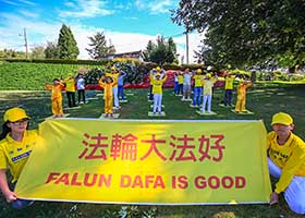 - 美加小弟子在和平门公园里展示功法(图)- 八月三十日,来自西雅图和温哥华的多名法轮大法小弟子在美加边境的和平门公园首次开展炼功、弘法和交流活动。