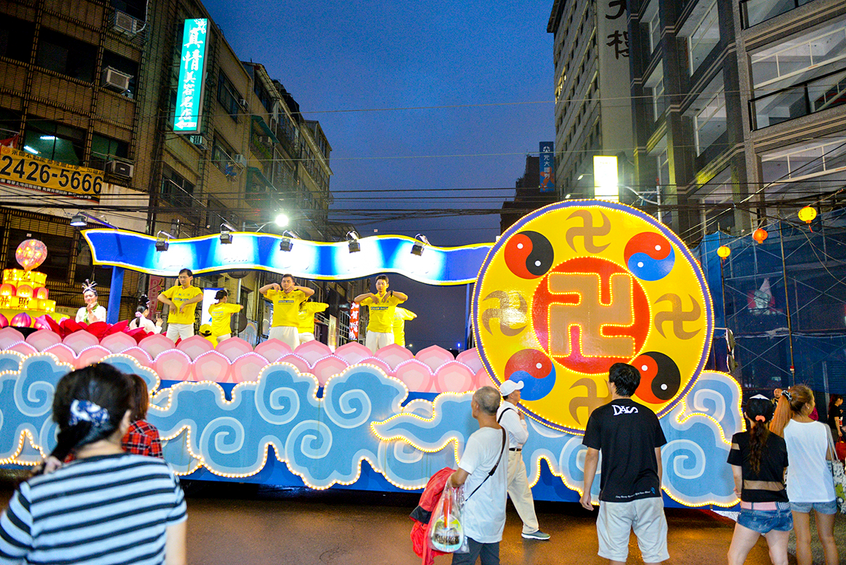 法轮功学员自二零零七年开始参与基隆中元祭游行,北、中、南学员组成的天国乐团每年约有近二百人与会,分别演奏《法轮大法好》、《法鼓法号震十方》、《法正乾坤》以及民谣《高山青》等曲目,整齐划一的行进队伍,在三、四个小时的游行中,都保持一贯的昂首阔步,精神抖擞,深受民众欢迎。