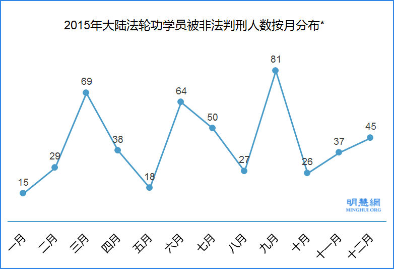 【明慧网二零一六年一月十一日】(明慧记者综合报道)二零一五年,中共继续以非法判刑的方式对毫无罪错的法轮功学员进行迫害。自从中共的劳教制度在各界压力下于二零一三年被迫取消后,判刑就成了中共迫害法轮功学员的主要方式。