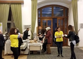 土耳其法轮功学员于二零一五年十二月中下旬在著名的哈比耶博物馆(Harbiye Museum)参加了当地“图书、咖啡和巧克力”为主题的图书展。很多参观展览的人对法轮功学员展示的功法很感兴趣。