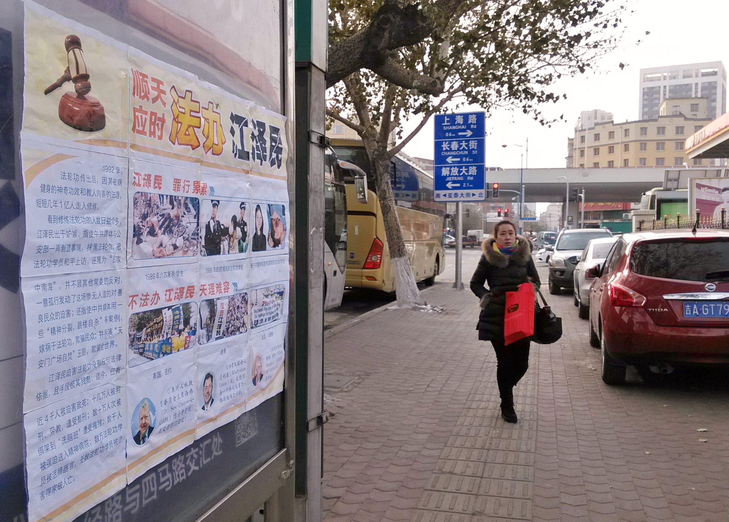 诉江展板出现在长春的各公交站台、伊通河畔、居民小区及林荫小路