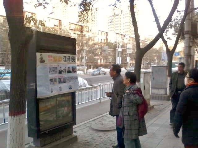 为了把控告江泽民(诉江)的信息告诉大陆民众,各地法轮功学员制作了展板和张贴,在大街小巷、广场等处展示、张贴。以下是明慧网发表的大量照片中的几例: