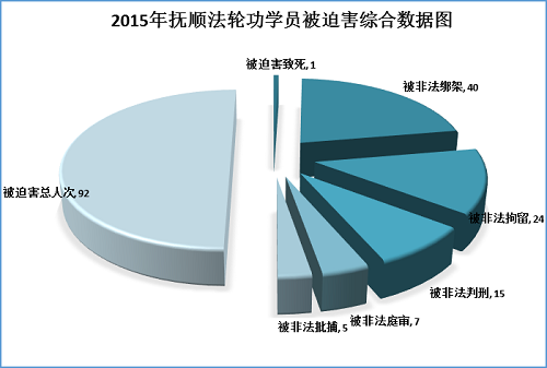 据明慧网报道所做的不完全统计,2015年抚顺地区法轮功学员被迫害致死1人,被绑架、拘留64人次,被非法判刑16人,被非法庭审7人,被非法批捕8人。