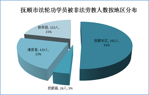 截止到二零一五年五月,明慧网上发表的抚顺法轮功学员被劳教迫害的人数至少有578人(实际有千余人)。其中抚顺市区292人,抚顺县26人,清原县133人,新宾县123人。