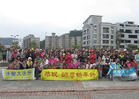一月一日上午,台北市士林区法轮功学员齐聚“士林官邸”,向法轮功创始人李洪志大师拜年:“恭祝师尊新年快乐!”
