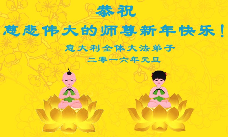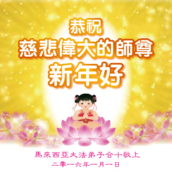 ![]() 图:二零一六年到来之际,英国法轮功学员恭祝慈悲伟大的李洪志师父新年快乐 |