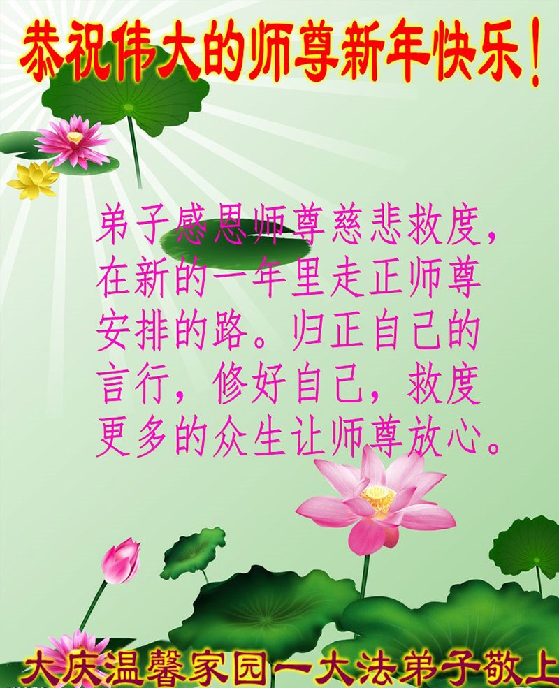 在新的一年里,弟子一定谨记师尊的教诲,精進实修多救人,让师父多一份欣慰,少一份操劳。