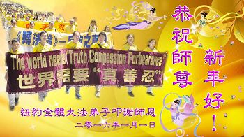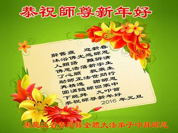<英文版: http://en.minghui.org/html/articles/2016/1/3/154653.html>美国纽约、芝加哥、加州等地大法弟子恭祝师父新年好