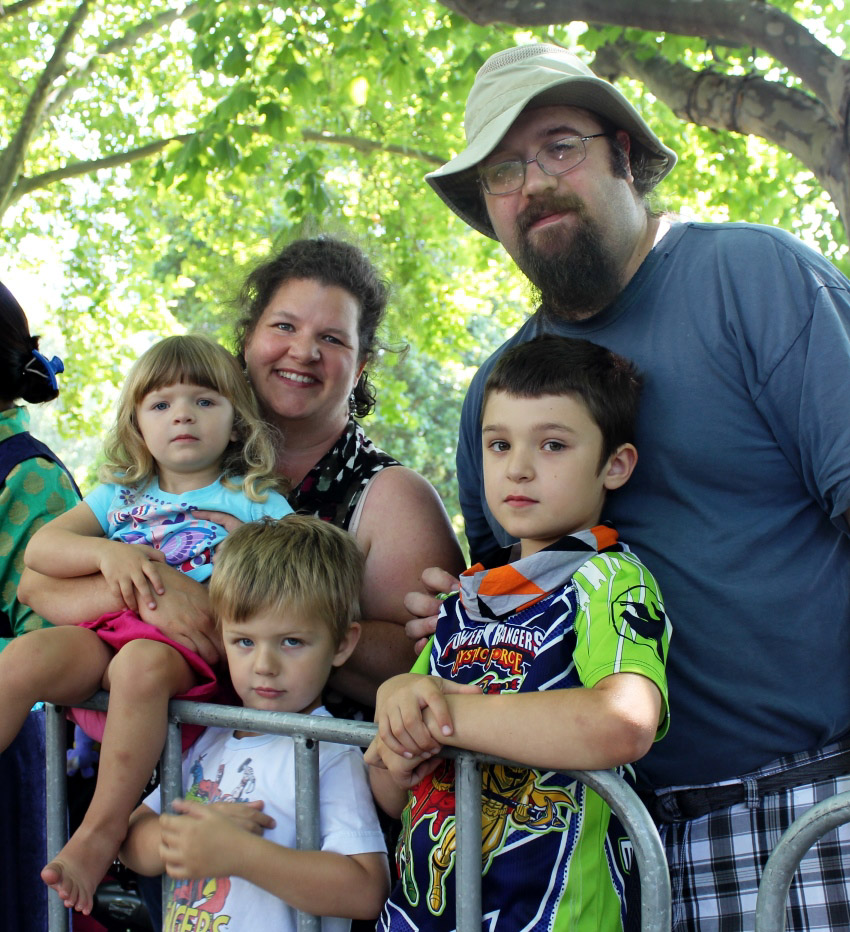 图5:来自圣基尔达(St Kilda)区的电脑工程师艾德瑞恩(Adrian)和妻子带著孩子观赏游行,他们都说,法轮大法队伍的表演非常好看,“正的能量很强!” |