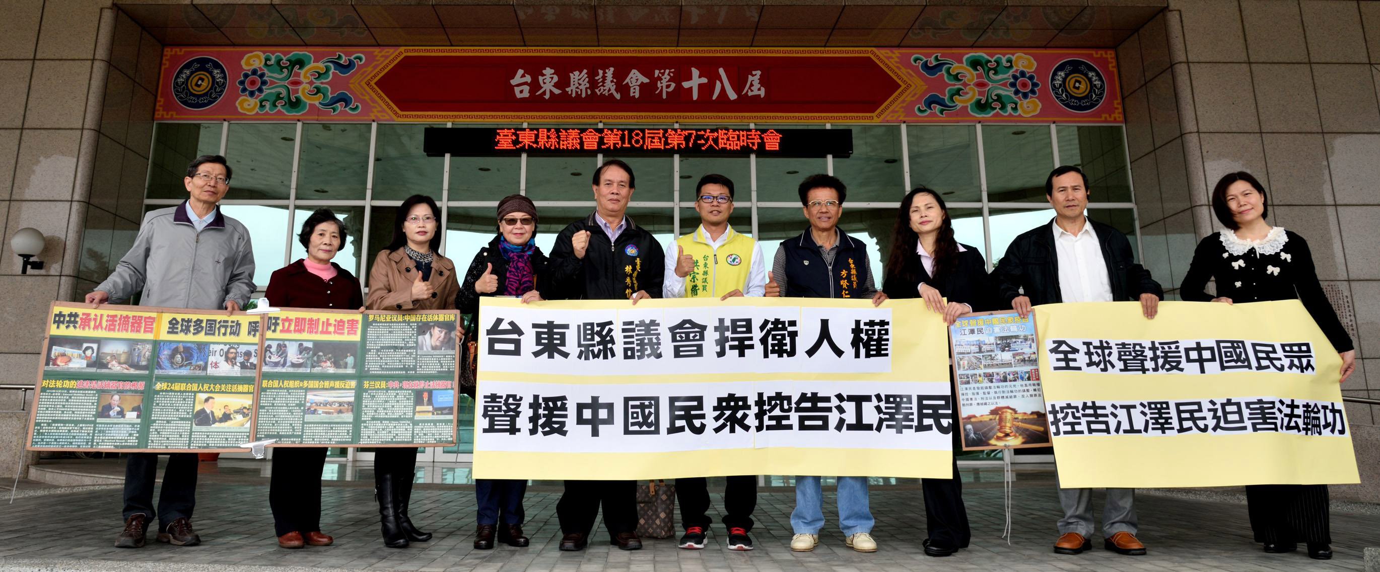 ![]() 图1:二零一六年一月二十二日,台湾台东县议会通过提案,声援中国民众控告前中共头目江泽民迫害法轮功。提案议员洪宗楷(右五)强调,人权和信仰是普世价值,希望中国政府了解民众心声,了解世界各国向民主前进的潮流,对法轮功信仰的迫害立刻停止。 |