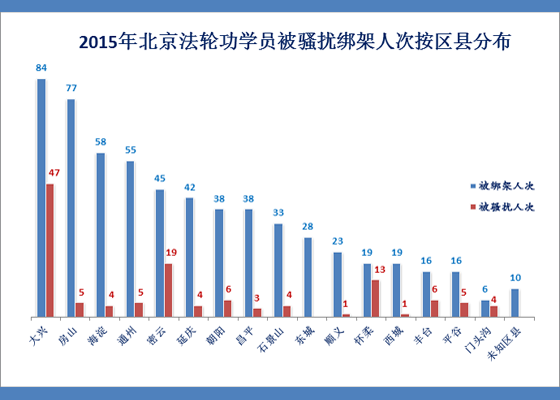 根据明慧网过去一年的报道,北京法轮功学员有39人被非法判刑,55人遭到非法庭审,28人被非法批捕,127人被无理骚扰,609人遭到绑架,多数因诉江遭绑架,但迫害难以为继,多数学员已平安回家。