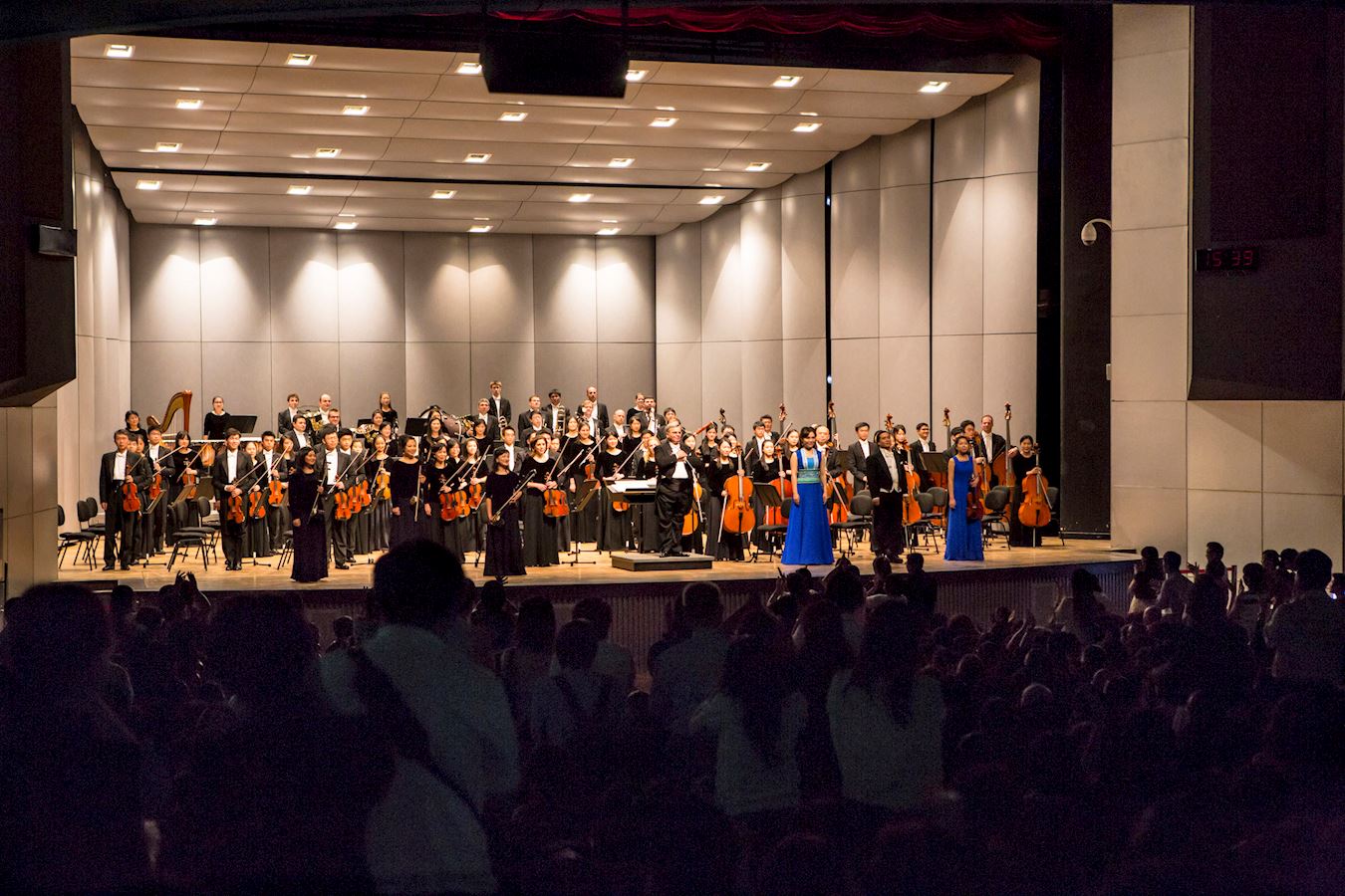 图1:指挥米兰•纳切夫在九月二十六日云林场演出后,带领音乐家们谢幕,观众们喝彩、呼声依然不绝