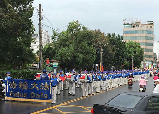 “法轮功队伍最浩大,很有精神!”天国乐团整齐浩大的队伍、铿锵有力的军乐声,围观民众纷纷赞佩,并拿出手机拍照。