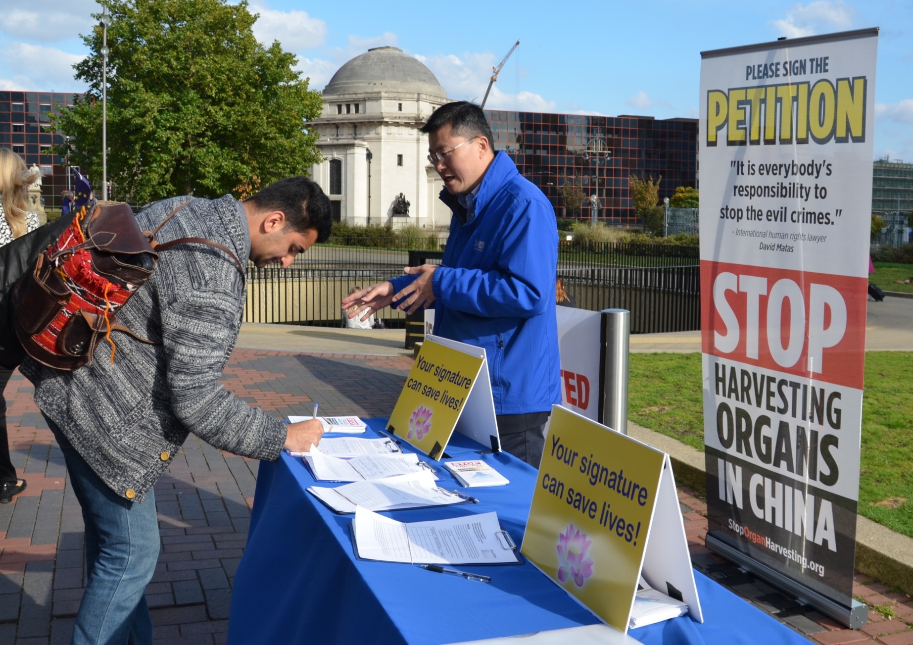 在英国出生的华人菲德拉(Phaedra)在伯明翰市政府工作。她在请愿书上签名后说,“活摘器官的行为恐怖、非人。无辜的人们不应该被谋杀。国际社会应该对此展开调查,禁止这样的罪行。”