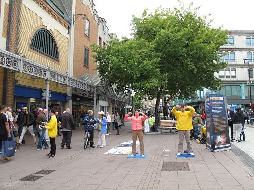 二零一六年十月八日,法轮功学员来到英国威尔士首府卡迪夫(Cardiff)商业中心区讲真相。