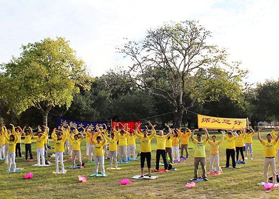 休斯顿法轮功学员荷门公园集体炼功(图)