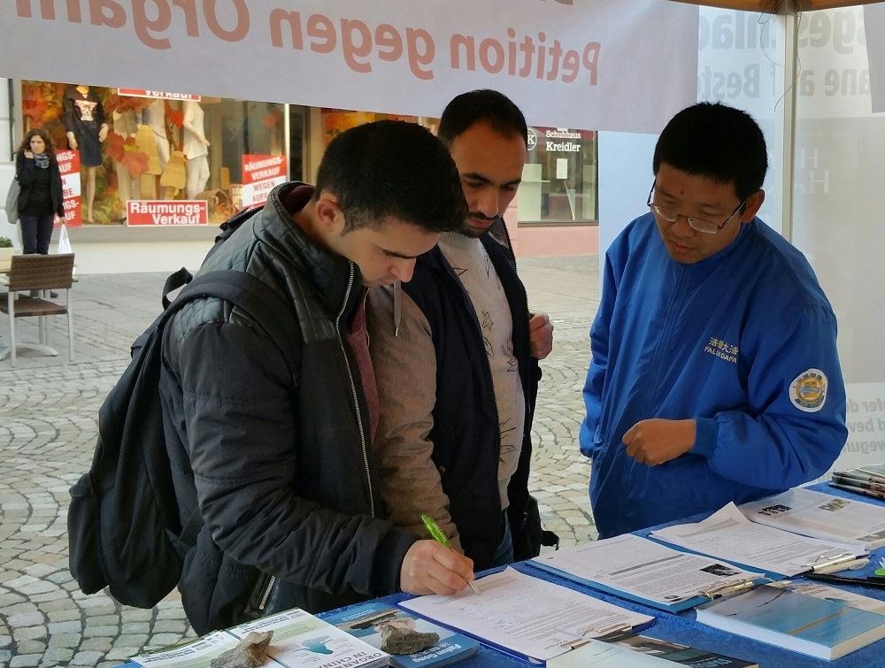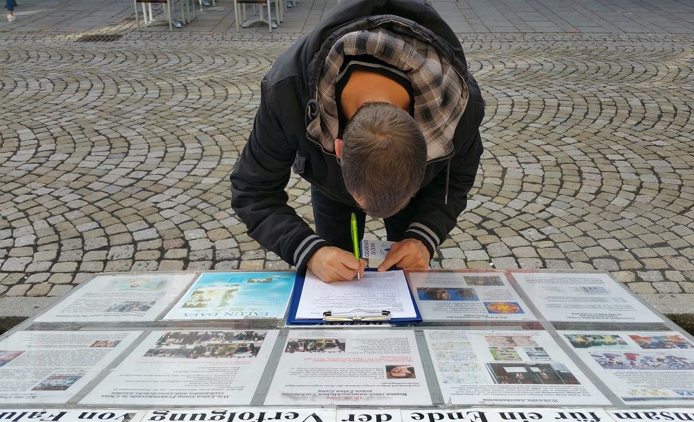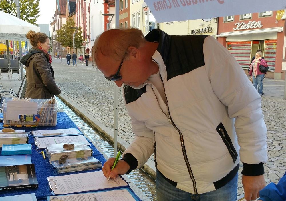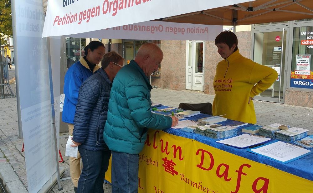 【明慧网二零一六年十月十八日】二零一六年十月十五日,德国部份法轮功在德国西南端的菲林根-施文宁根(Villingen-Schwenningen)古城,举办了反迫害征签日活动。