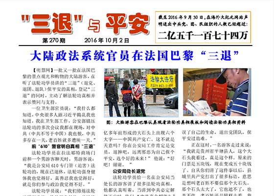 大陆政法系统官员在法国巴黎“三退”