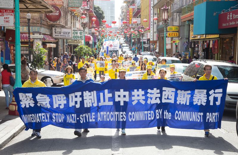 图1-9:二零一六年十月二十二日,来自世界各地的法轮功学员汇聚在旧金山举办的盛大游行,旧金山民众称:希望全美国的人都能看到这一幕。