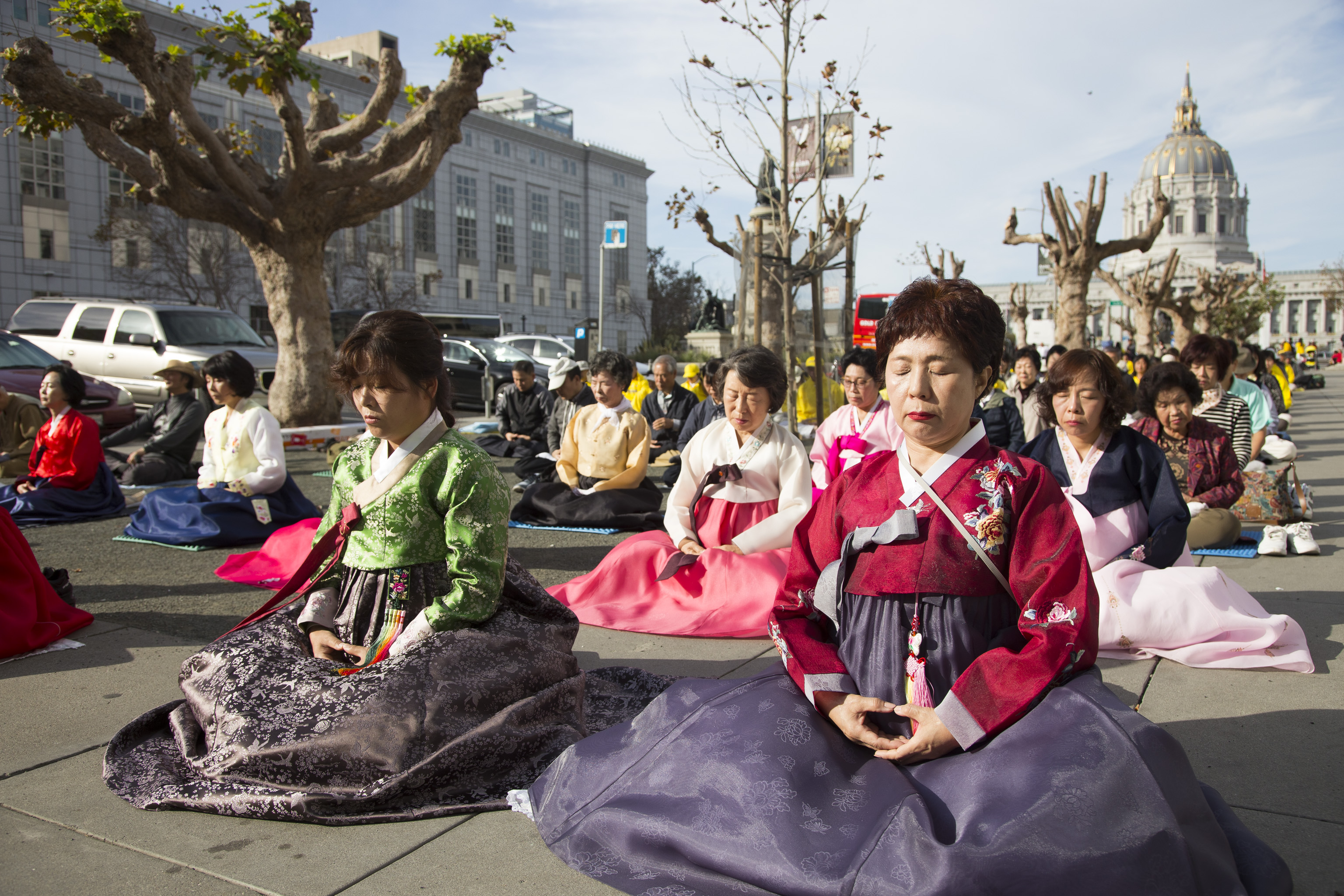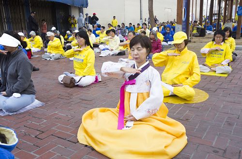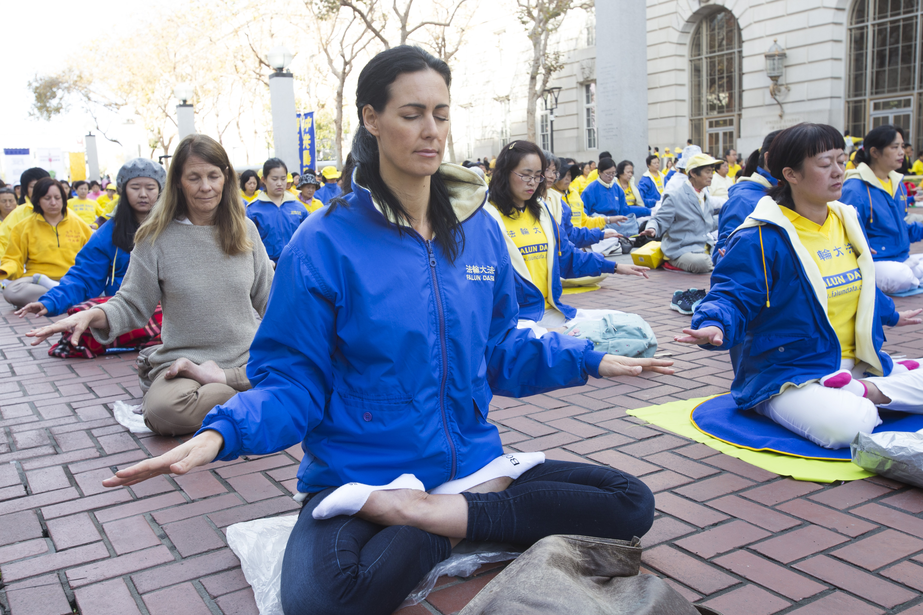 ![]() 图1-4:二零一六年十月二十二日上午,约三千各族裔法轮功学员在旧金山联合国广场集体炼功,过往路人感受祥和。 |