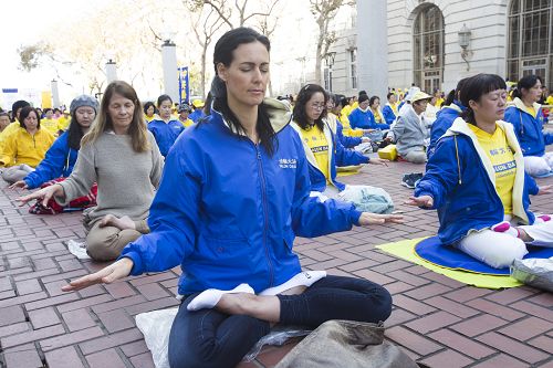 Martin是一位电脑编程工程师,他从瑞典到旧金山参加会议,经过联合国广场,看到法轮功学员的集体炼功场面被吸引,驻足观看许久、并拿出手机拍下这美好的场面。他是从媒体和网络上得知的法轮功,他知道这是一种会使身心受益的功法。他说:看到这么多法轮功学员一起打坐,令他非常感兴趣,他感到很美好。