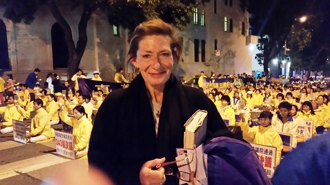 她说:“无论多少次经过这里的时候,我看到法轮功学员的活动,我都会感同身受,深切体会到他们遭受的痛苦。在英语世界里,没有合适的词汇能形容这种迫害的残酷和可怕。”