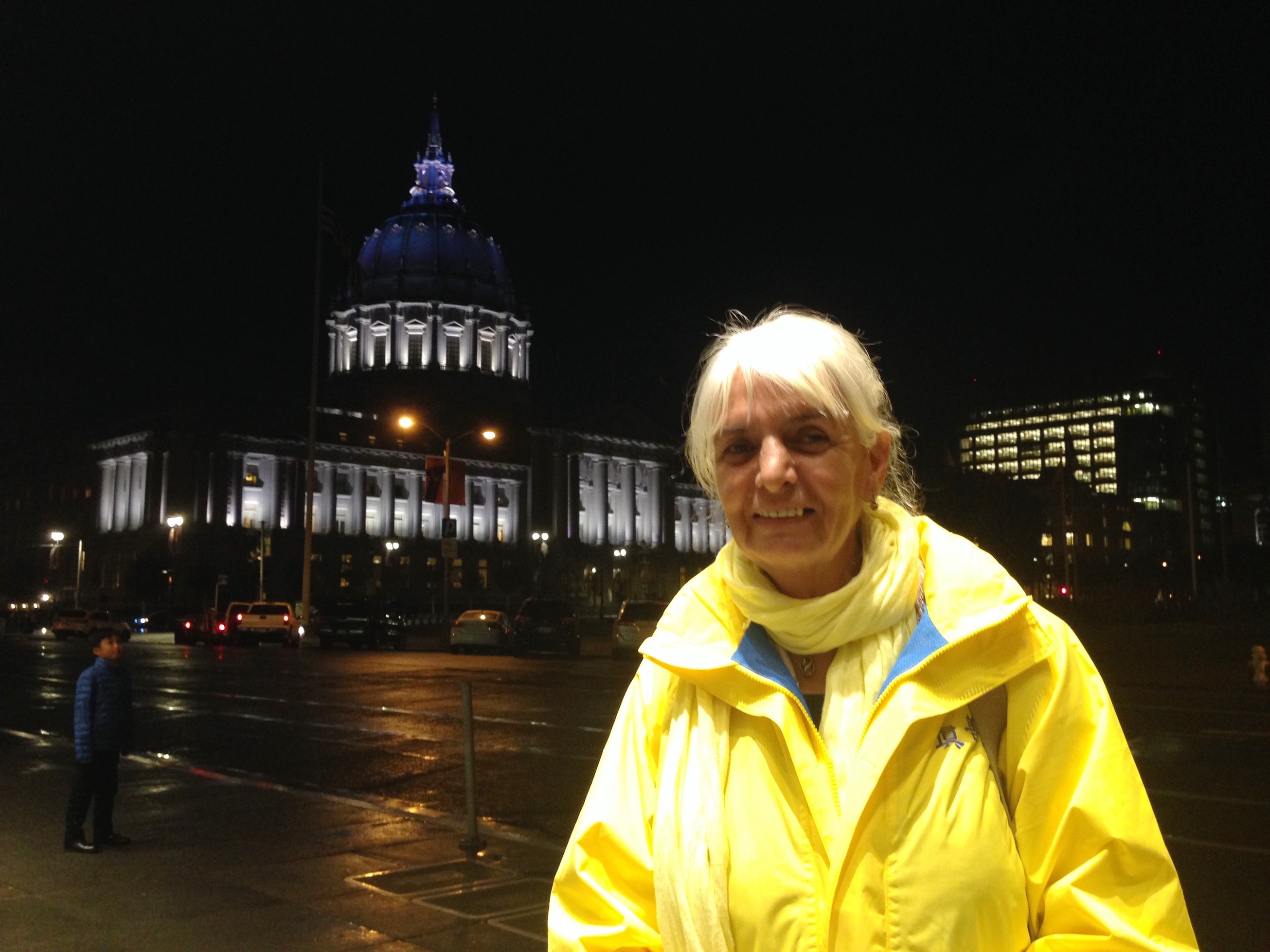 艾维娃(Aviva)来自以色列一个小城镇,十四年前的一天晚上,看电影后她遇到两个打着“停止迫害法轮功”横幅的华人法轮功学员,递给她一份法轮功传单,从此走上修炼法轮功的道路。来旧金山法会之前,她在台湾短期生活,参加台湾法轮功学员讲真相活动并初学中文。