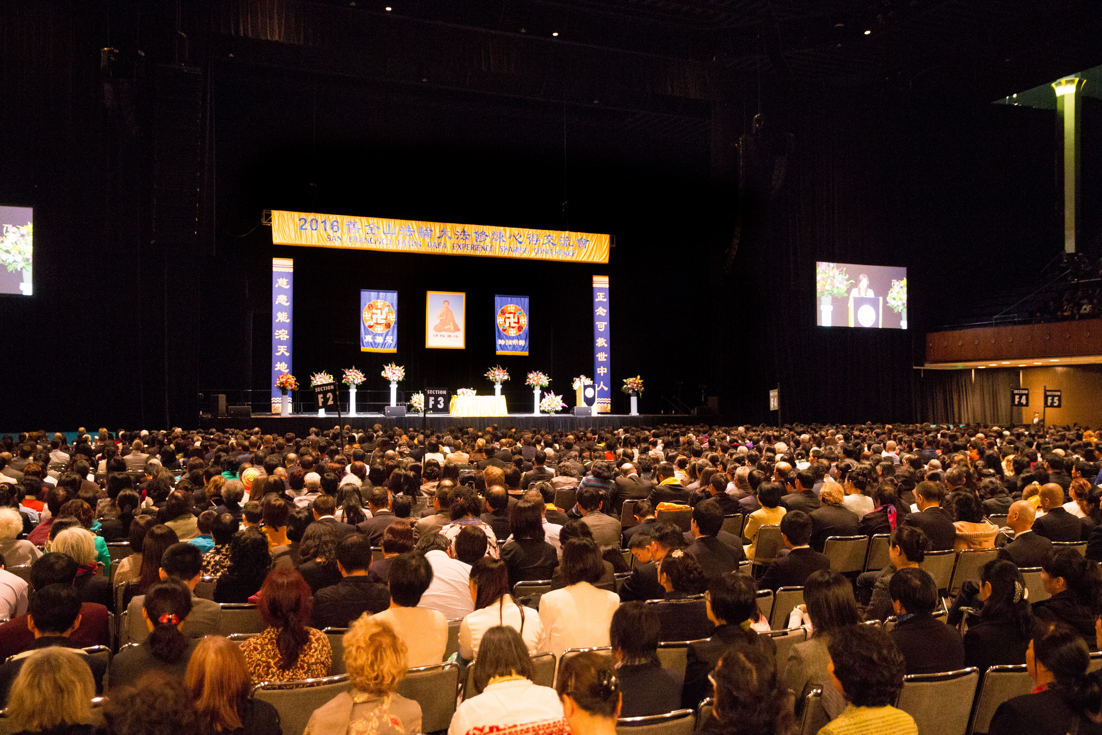 ![]() 图1:二零一六年十月二十四日,旧金山法轮大法修炼心得交流会在旧金山市中心比尔•格雷姆市政礼堂(Bill Graham Civic Auditorium)隆重召开,近六千中、西方法轮功学员从世界各地前来参加。 |