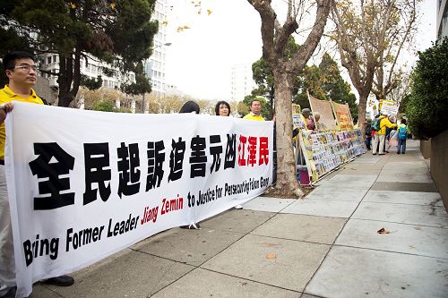 ![]() 图1-5:二零一六年十月二十五日上午,部份来自各地的法轮功学员在中领馆前集会,呼吁营救亲人,法办迫害元凶江泽民。 |