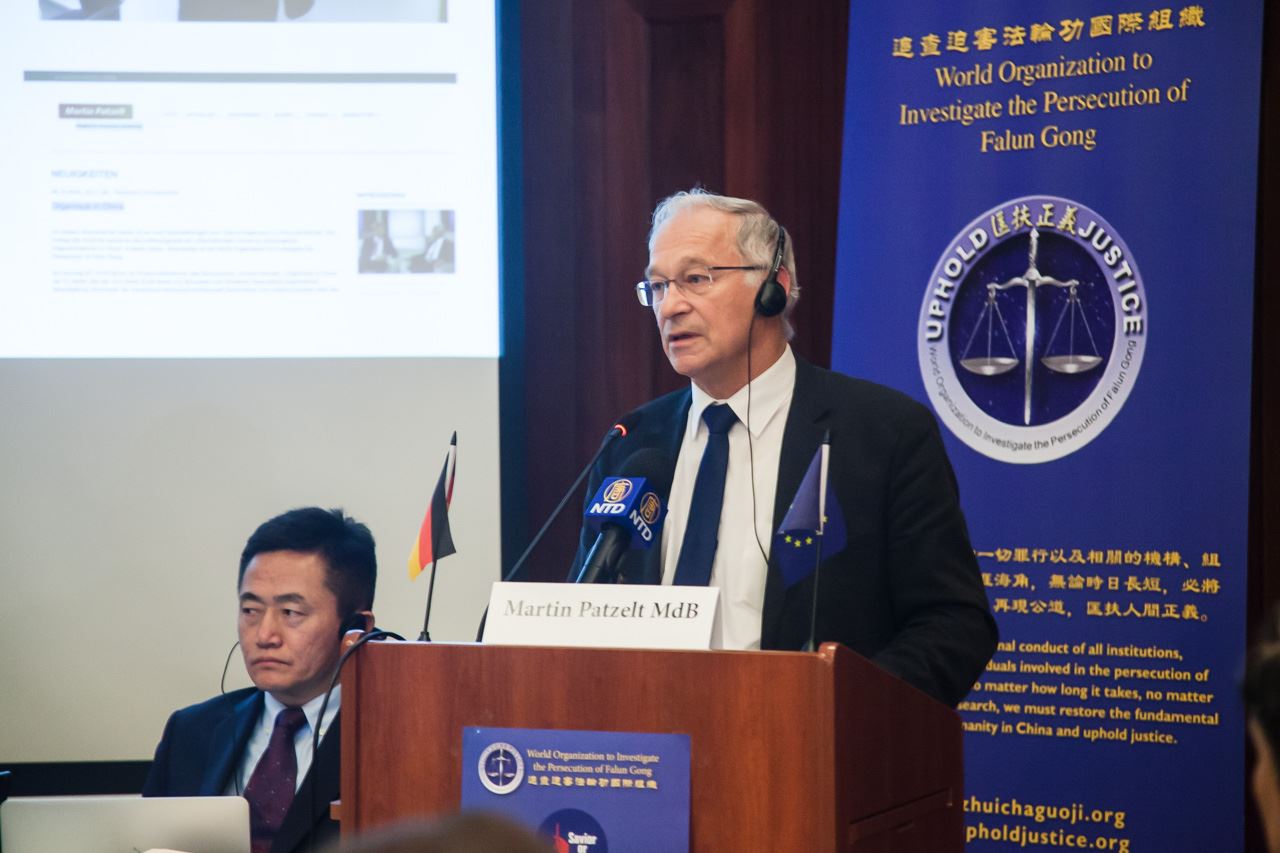 德国联邦议会人权委员会成员马丁·帕策尔特 (Martin Patzelt)来自前东德地区,年轻时就坚信迫害无辜百姓的东德共产专制必将倒塌。他在论坛开幕词中说:“活摘器官已经持续了十几年了,现在不但没有减少,反而在增多,成了一个实行暴力的手段。无论我们用多少方法把这件事情告诉全世界,都不为多。我们能容忍这个罪行吗?我们想闭上眼睛吗?我们可以闭上眼睛吗?”“国家参与强摘人体器官获利,这是史无前例的,这种形式是史无前例的。”