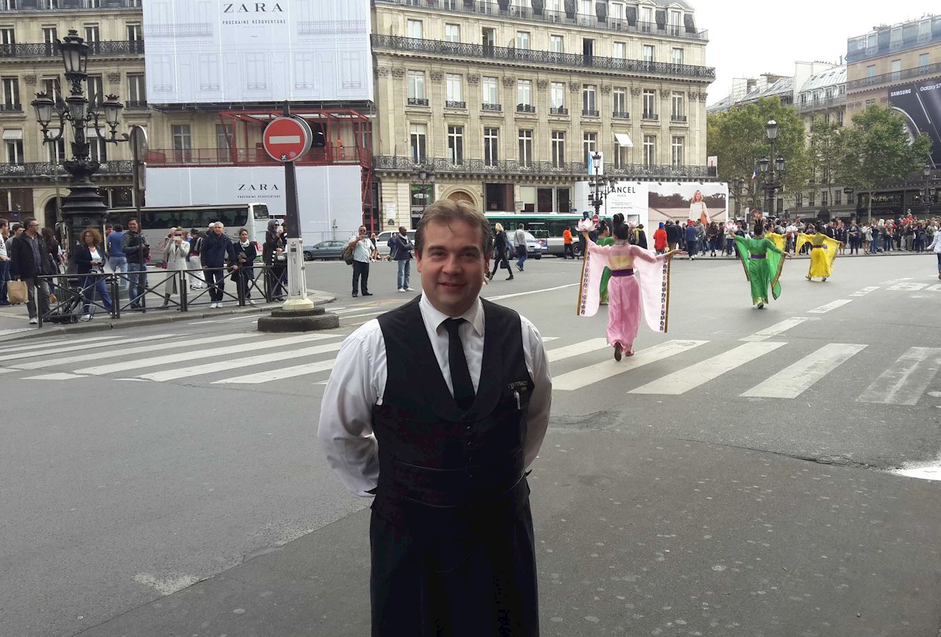 亨利(Henri)是巴黎一家餐厅的服务员。他说:“这是很美的游行,向法国人介绍中国的文化、价值,那些我们不知道的、想要了解的,那些对人类有益的、随着时间的流逝而应该要永远传下去的东西。”看到法轮功真相传单上的“真、善、忍”的时候,他说:“这是生活的价值,是生活之道”。