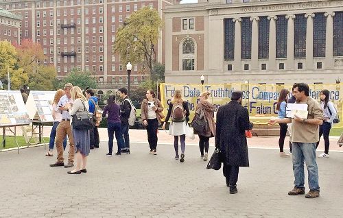 十月十七日到二十日,美国常春藤名校哥伦比亚大学(简称哥大)法轮大法俱乐部在哥大校园举办图片展,介绍法轮功的美好以及法轮功在中国无辜遭受迫害的真相。