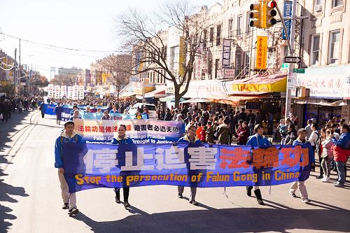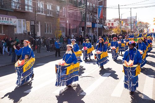活动组织者介绍了此次游行的目的:“我们今天来到这里就是想要告诉布碌仑的华人——法轮大法好。想要把大法的美好和壮观带给这里的华人。因为布碌仑的八大道已经发展为纽约第三大华人社区,越来越多的华人移民到这里来,他们都很善良。我们队伍里有腰鼓队、舞狮队和仙女队,我们也希望能展示出中华传统文化的瑰丽。”