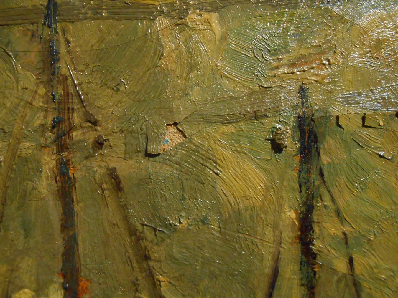 如果表皮干透收缩,甚至逐渐变脆的时候,下面的颜料正处于体积变动的氧化阶段,那么表皮的开裂就是不可避免的了。那些在一层中就堆得很厚的油画就是这种情况,包括追求视觉冲击的厚重笔触所造成的膨胀收缩不均亦是如此。有的人为了表达强烈的主观情感,直接从颜料管里把颜料挤到画布上堆为色层;还有人在颜料中掺入砂子、泥土、碎纸、布头、木屑等各种各样的混合物,使材料的稳固性变得异常脆弱。这些油画都难以逃脱开裂、脱落、并被历史所淘汰的命运。