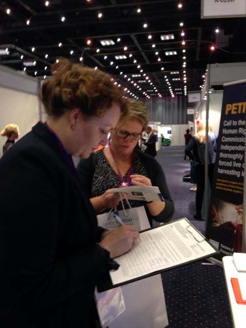 不少参加活动的医生看到展台的条幅:医生反对强摘器官协会(Doctors Against Forced Organ Harvesting)马上就过来了解,究竟发生了什么。人们很难相信在当今世界还有这样的事情发生。当人们观看美国著名作家、人权活动家葛特曼以及加拿大著名人权律师大卫·麦塔斯和大卫·乔高调查中共活摘法轮功学员器官的纪录片,和“活摘——十年调查”片子后,震惊、难过和人的善良本性都会使他发自内心地用行动帮助终止迫害
