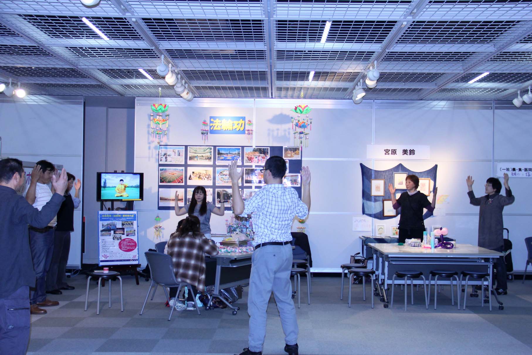 今年同时设有两处舞台,达人舞台即名人披露绝技舞台。法轮功学员在达人舞台演示了法轮功的五套功法动作,畅谈了学习法轮功后的身心可喜变化。观众不约而同改坐为站立姿势学炼法轮功,并感受到强大的能量场。最后,法轮功学员伊贺美奈子用中文演唱了“得度”这首歌曲,歌声慈悲、宽广,打动了在场观众。