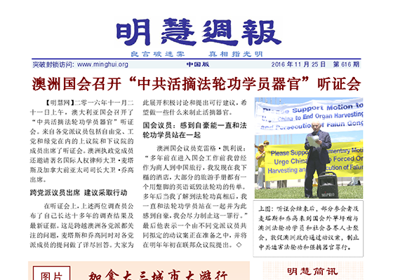 澳洲国会召开“中共活摘法轮功学员器官”听证会;加拿大三城市大游行 天国乐团受欢迎;原空军院校教官再被非法庭审