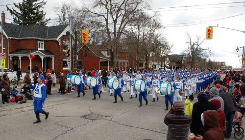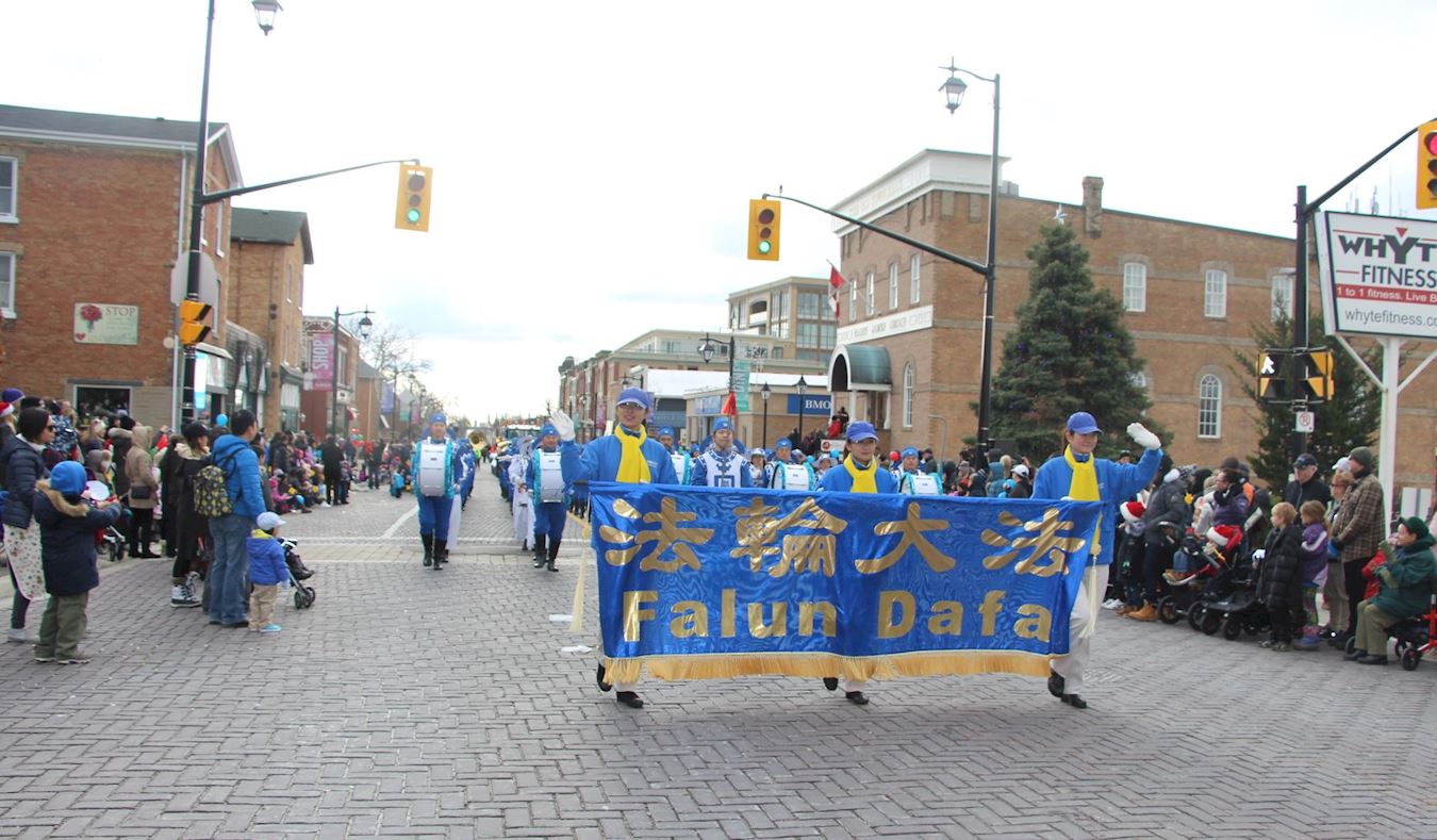 这是由法轮功学员组成的多伦多天国乐团参加北边的Markham(万锦市)圣诞大游行时出现的一幕。这对夫妇俩是来自沈阳的摄影爱好者,太太一边拍照一边说:“法轮功在海外可以这么自由展现他们的美好,其实在国内现在也越来越多人明白了(法轮功真相),相信形势会越来越好的。那古装真好看,法轮功好就好在一直在弘扬中国的传统文化。”她的先生一边录像一边竖着大拇指表示赞赏。