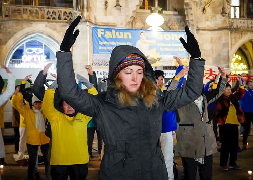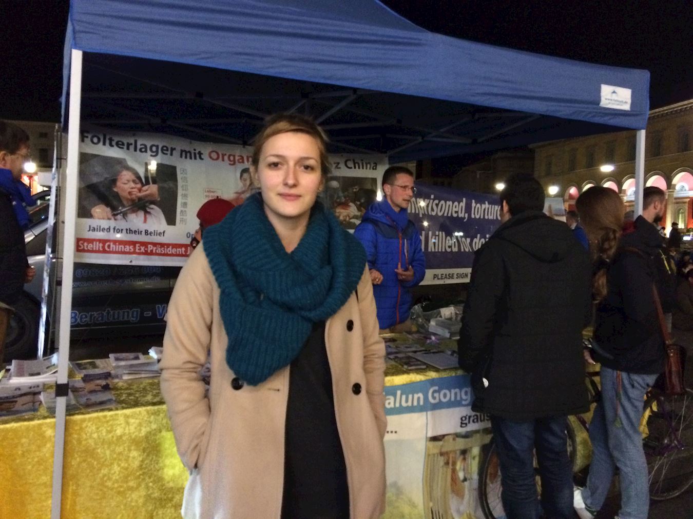 来自俄罗斯,在一间国际公司任市场推广经理的马丽娜(Marina)到慕尼黑旅游,她在支持法轮功学员反迫害征签表上签名后,她说:“我认为法轮功非常好,法轮功的‘真、善、忍’原则应该传遍全世界。法轮功学员们应该拥有自由炼功的权利。”“让人们知道(中共)活摘法轮功学员器官正在中国发生,这非常重要。强摘器官必须被制止。”
