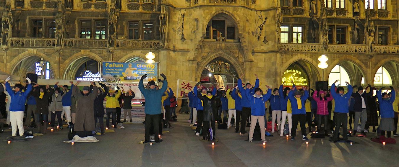 【明慧网二零一六年十一月七日】(明慧记者兰玲、李欣慈德国慕尼黑报道)二零一六年十一月四日、五日晚,来自欧洲不同国家的部份法轮功学员分别在玛丽亚广场(Marienplatz)和Max-Joseph广场以烛光守夜的方式,揭露中共酷刑迫害法轮功学员,甚至活摘法轮功学员器官牟利,同时呼吁世人支持正义,帮助制止中共对法轮功学员的迫害。
