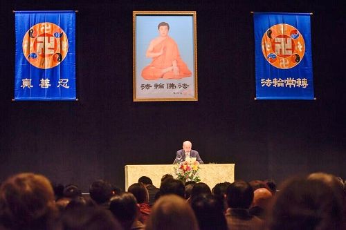 法会开幕后,法会主办方首先以中、英和德三种语言宣读了法轮功创始人李洪志先生发来的贺词,李洪志先生祝法会圆满成功!同时叮咛法轮功学员:“作为一个修炼者,修是修自己。”[1]