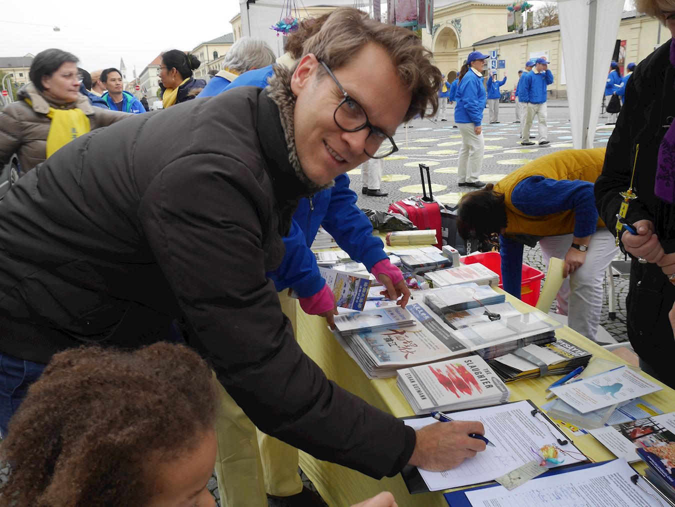 退休工程师 Engleitner表示,他很关心发生在中国的迫害。他说:“我是慕尼黑本市人,我之前已经了解这场(发生在中国针对法轮功学员的)迫害,所以我到这里来签名。我很关心这件事。这个(迫害)事情很不好,应该制止。”