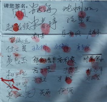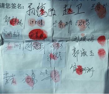 大连民众和法轮功学员的亲属按红手印签名举报江泽民