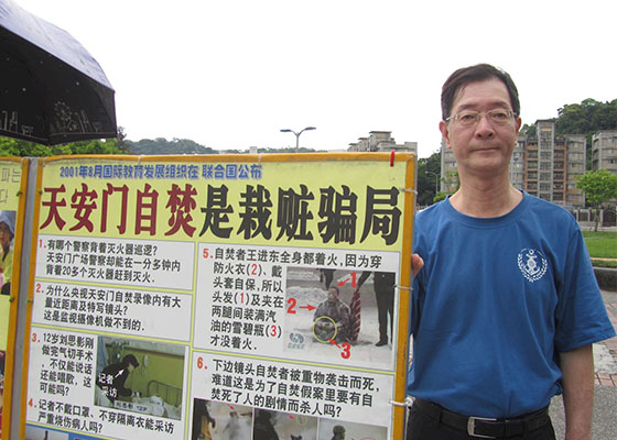 台湾景点士林官邸,无论晴雨都能看到法轮功学员的身影,董国强是其中一位,看到精神饱满的他,谁能想到他曾长期因羸弱体质药不离身呢?