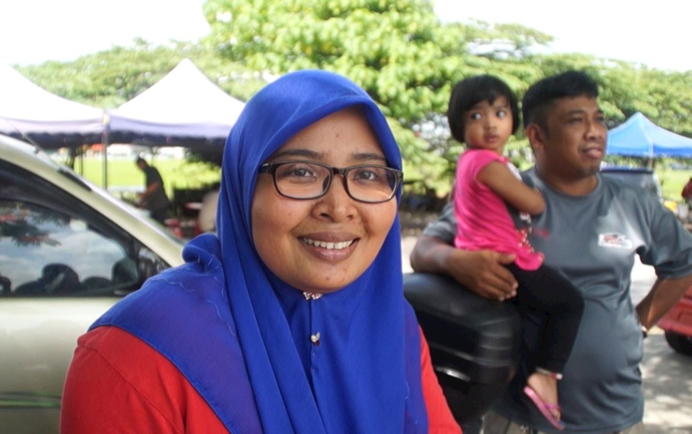 当地马来妇女Ana与丈夫和孩子一起驻足观看法轮功学员的游行。她感到佩服的是,看到有很多老年人都有参与,尤其是在这炎热的天气中,看到他们都很健壮。